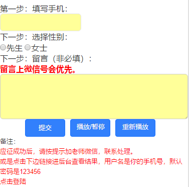 2、如果是新会员,输入完电话后会要求输入名字,这时候会有一个自动注册的过程,应征工作的人感觉不到。