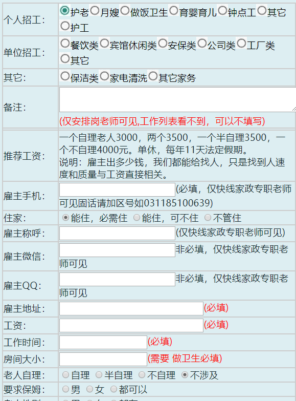 2、雇主手机和称呼是必填项