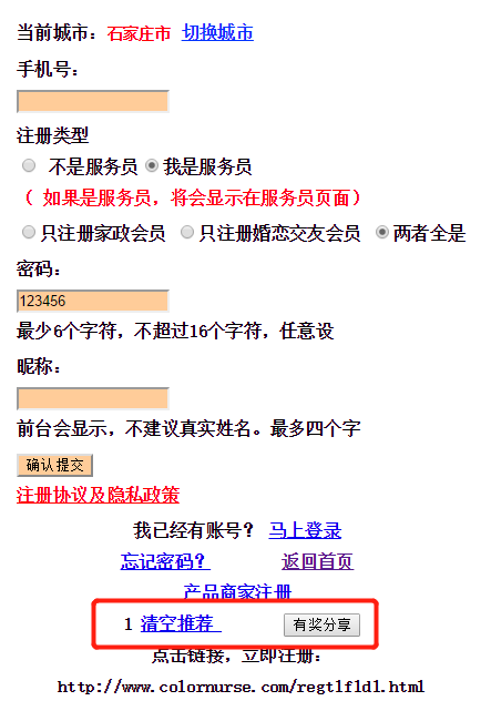 1、通过会员注册功能添加会员。此时注意下边的清空推荐前边的数字,如果不是自己ID号,则点清空推荐,输入推荐人手机就注册到了自己名下,并且,只要自己登陆一次后台,清空推荐前边的ID就是自己的了,就不用输入推荐人手机了。
