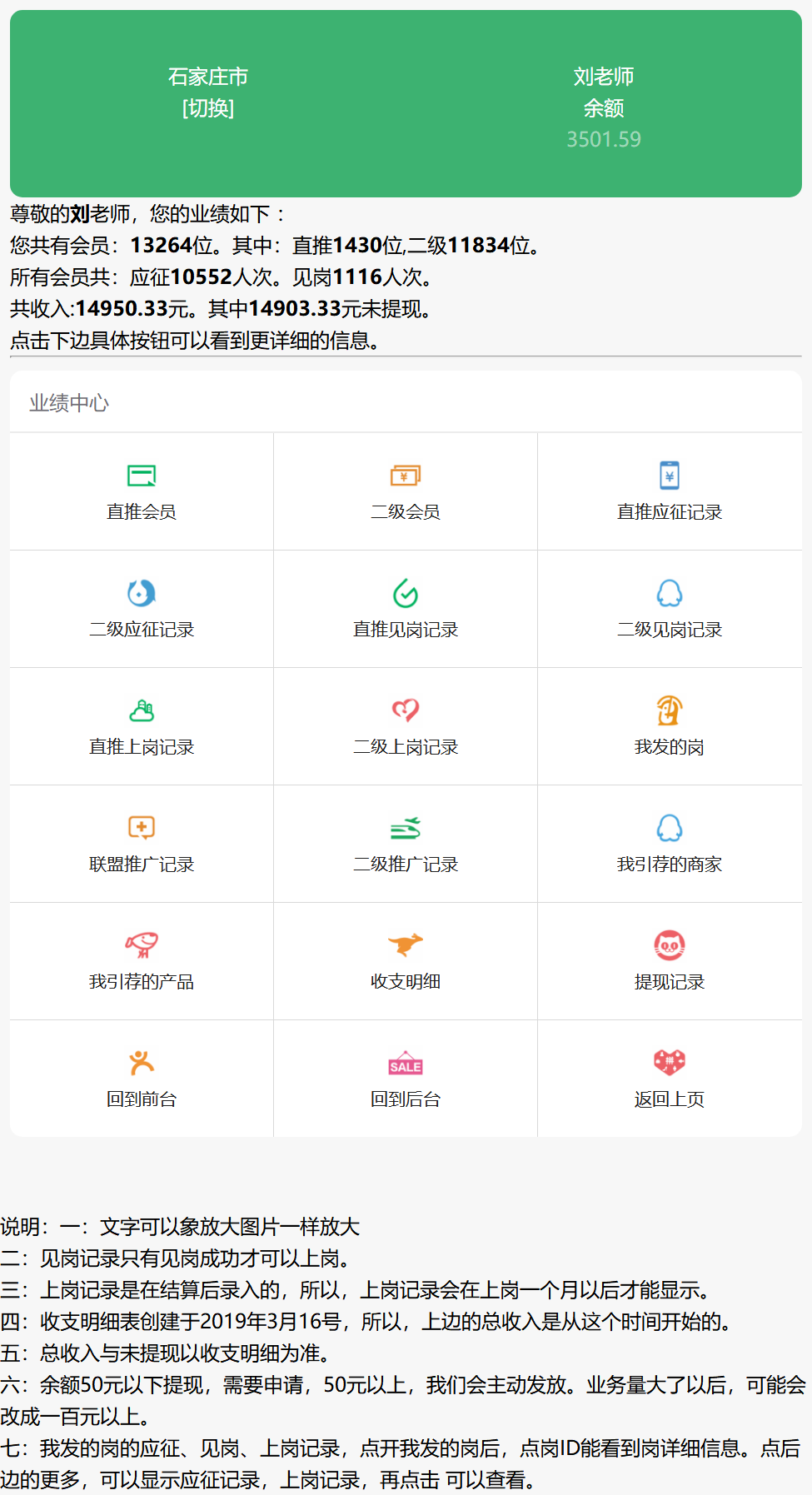 比如:直推应征记录:记录了你所有的直推会员应征过哪些